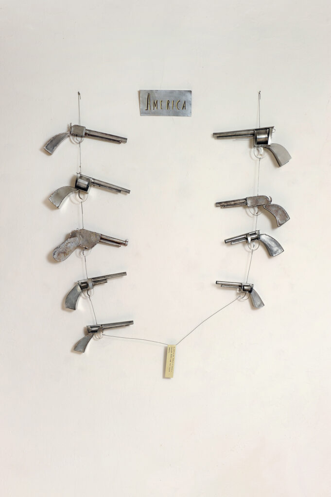…La materia, la ruggine, le macchie, le campiture di colore, gli strappi, le saldature diventano un vocabolario minimo densissimo. Tutto in un rigore formale talmente sapiente da sparire. Poi arrivano i titoli. Barocchi, impossibili.
